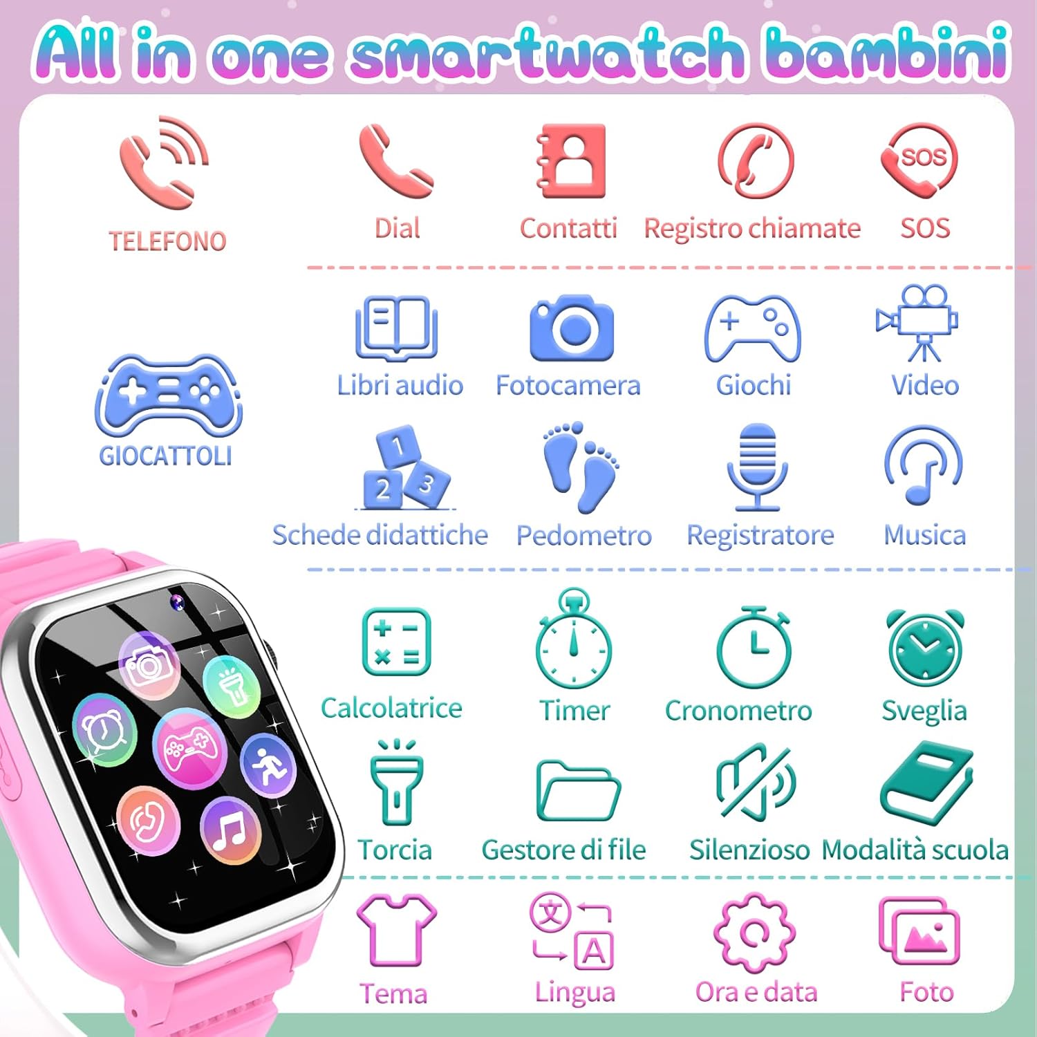 Watch Smartwatch Children 26 Games Phone Pedometer Calorie S...