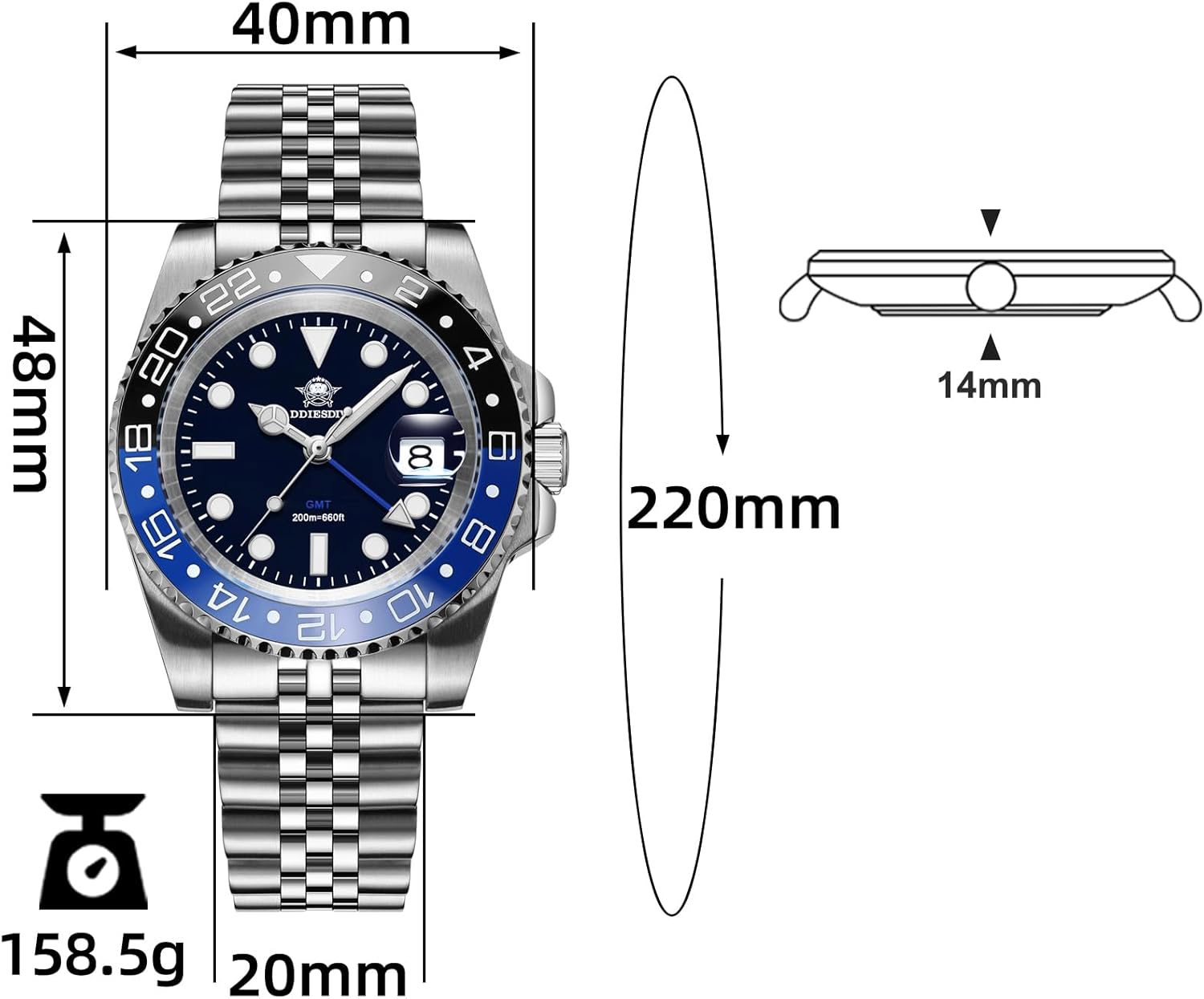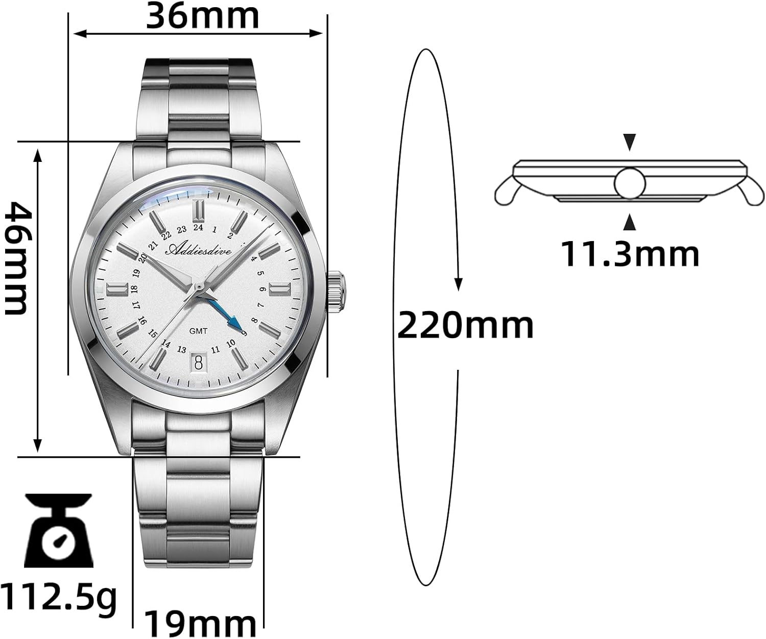 ADDIESDIVE GMT Men’s Watches Swiss Quartz Movement Div...