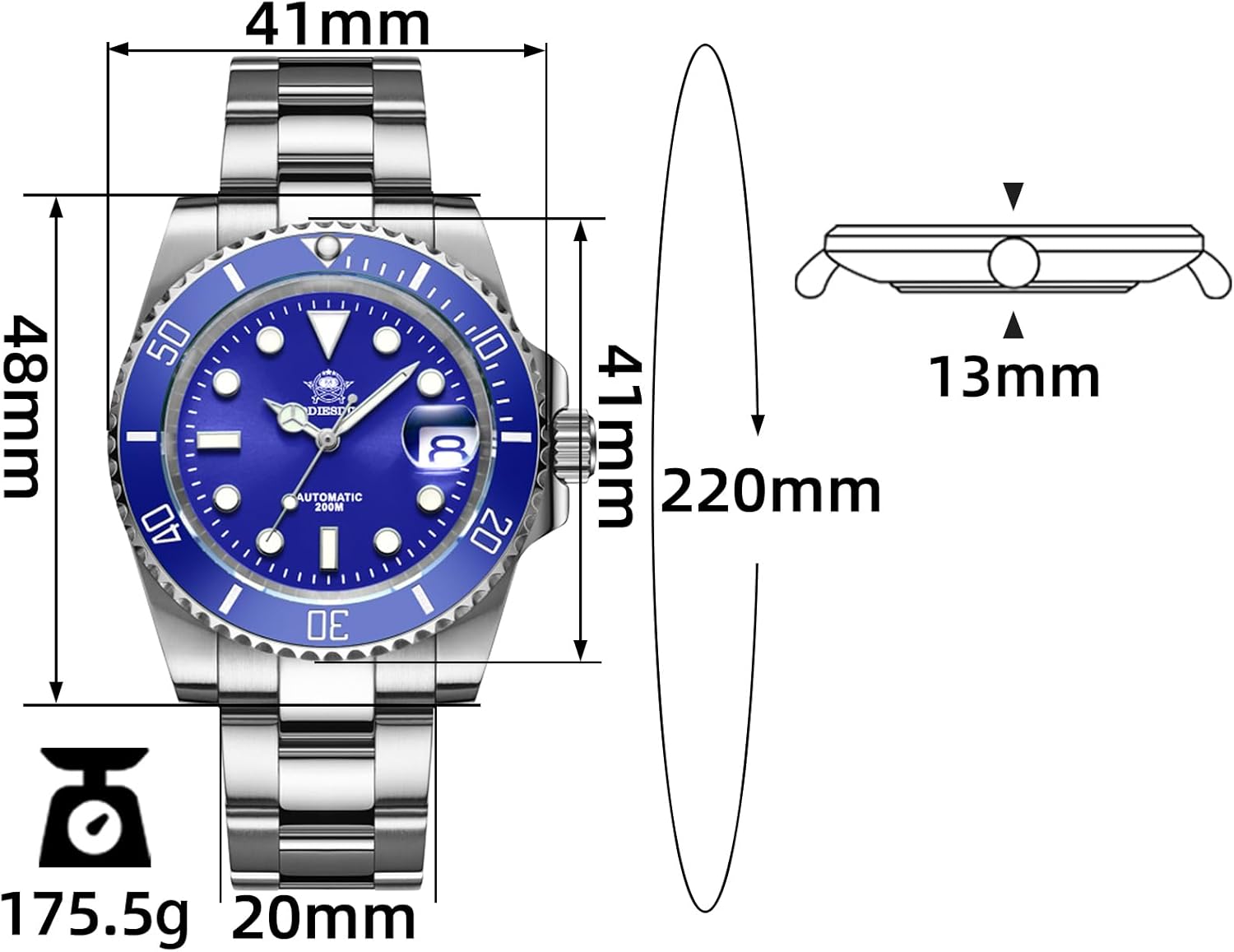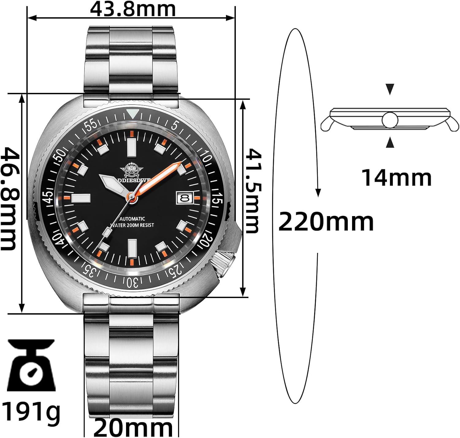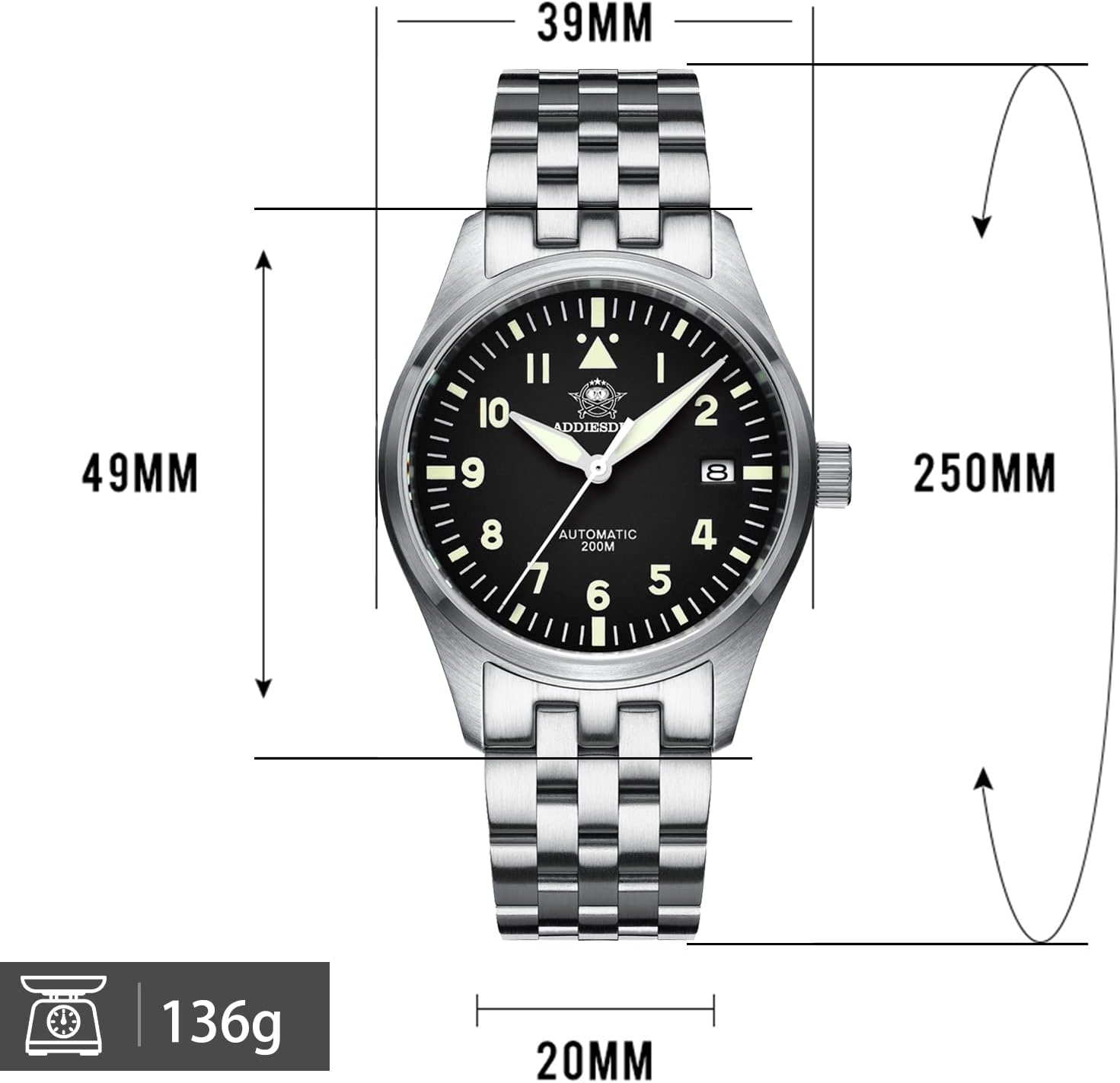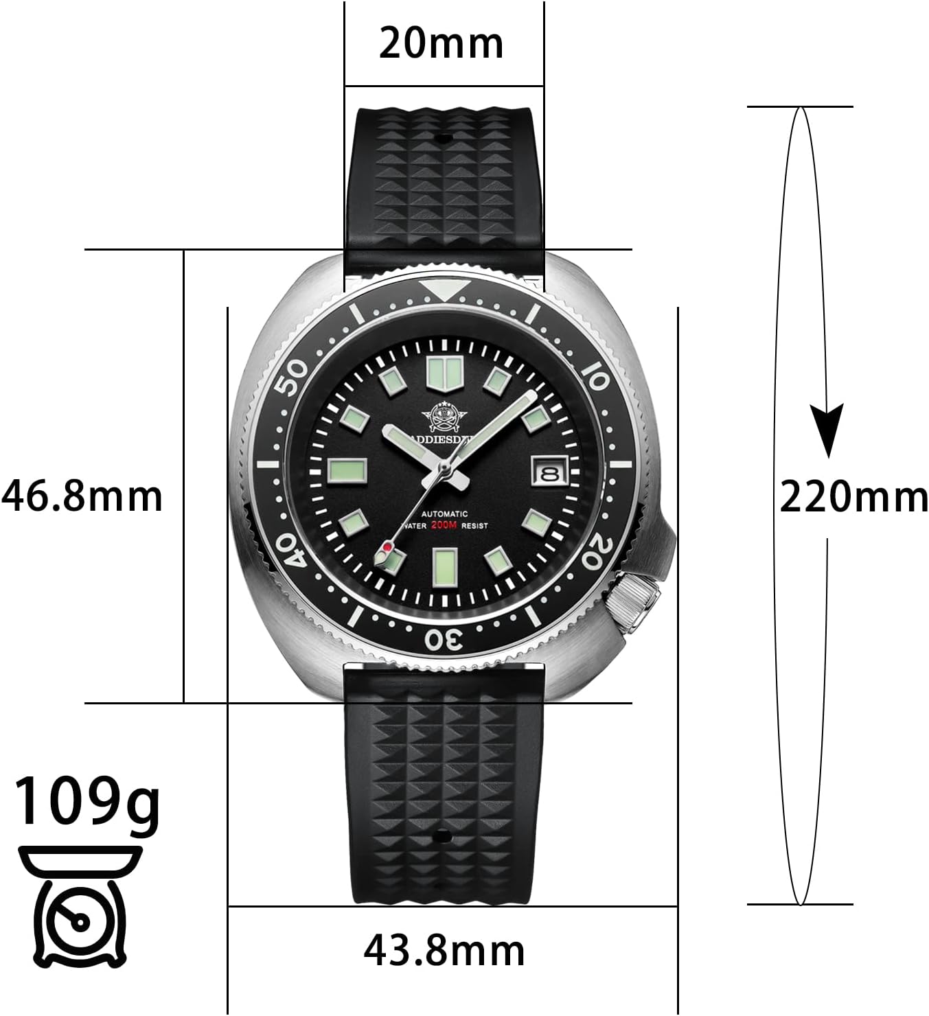 ADDIESDIVE Diver’s 200M Men’s Quartz Watch Lumin...