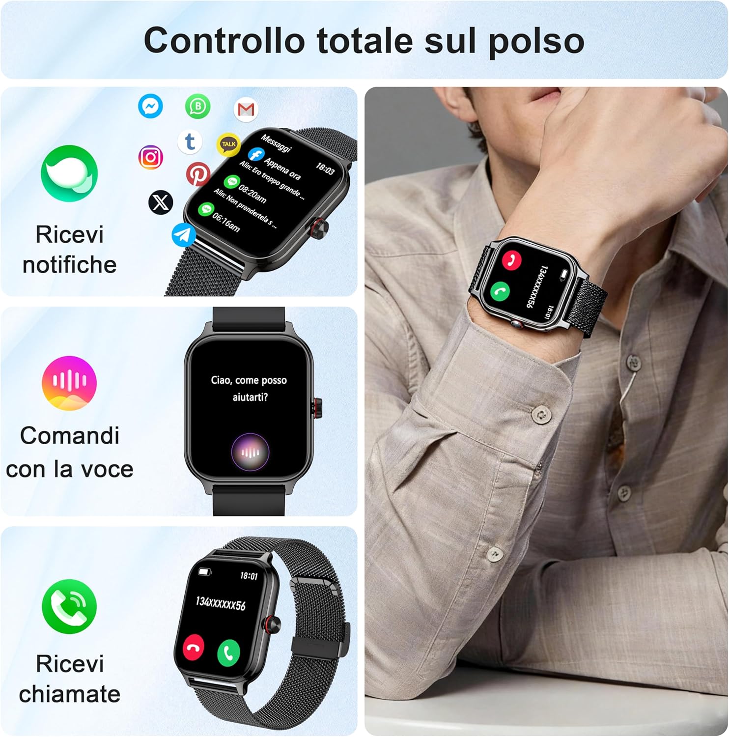 Smartwatch Men Women Calls and Whatsapp Smart Watch Pedomete...