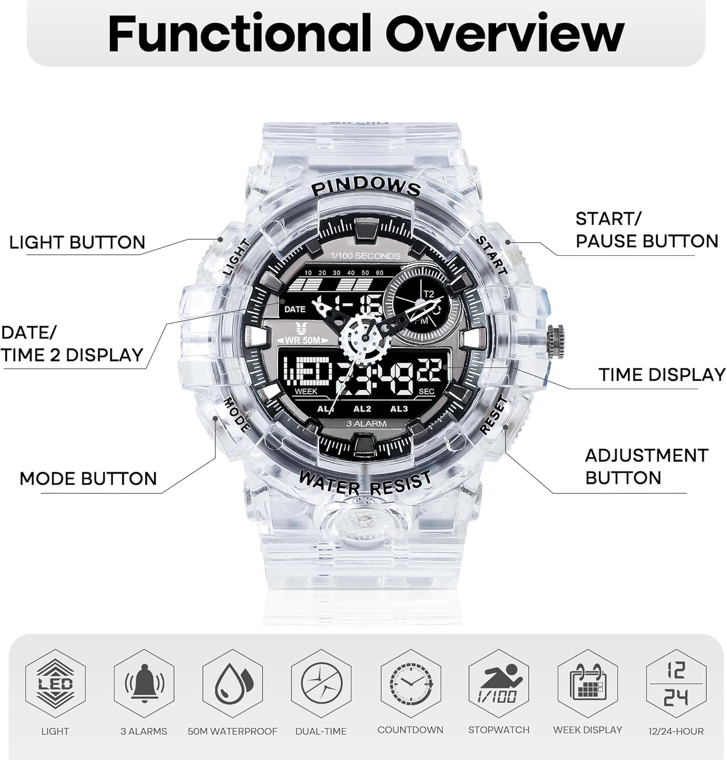 10 ATM Luminous Waterproof Self-Breathing Water Diving Clock...