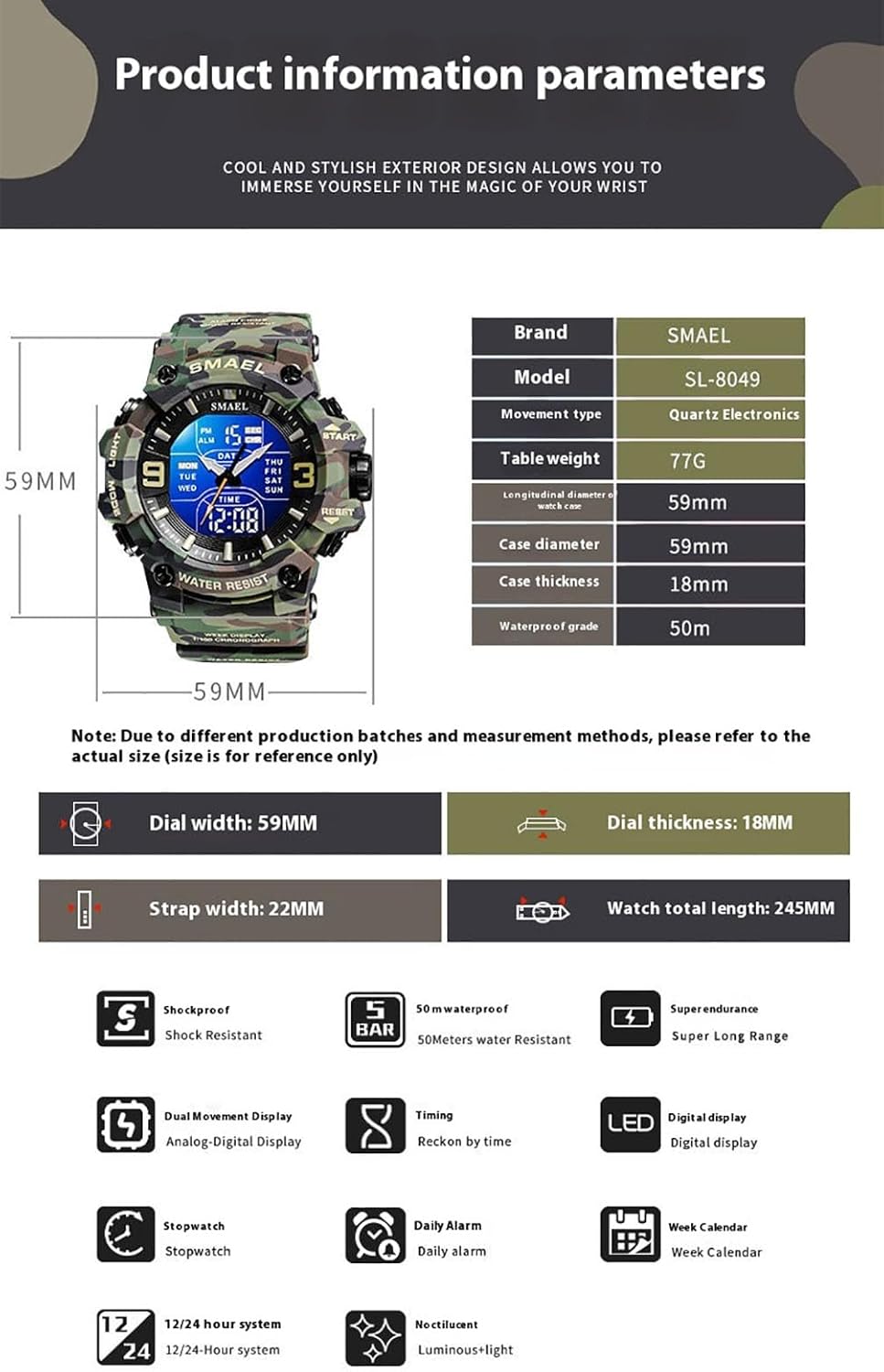 AVTREK Waterproof Digital Watch Outdoor Sports Military Watc...