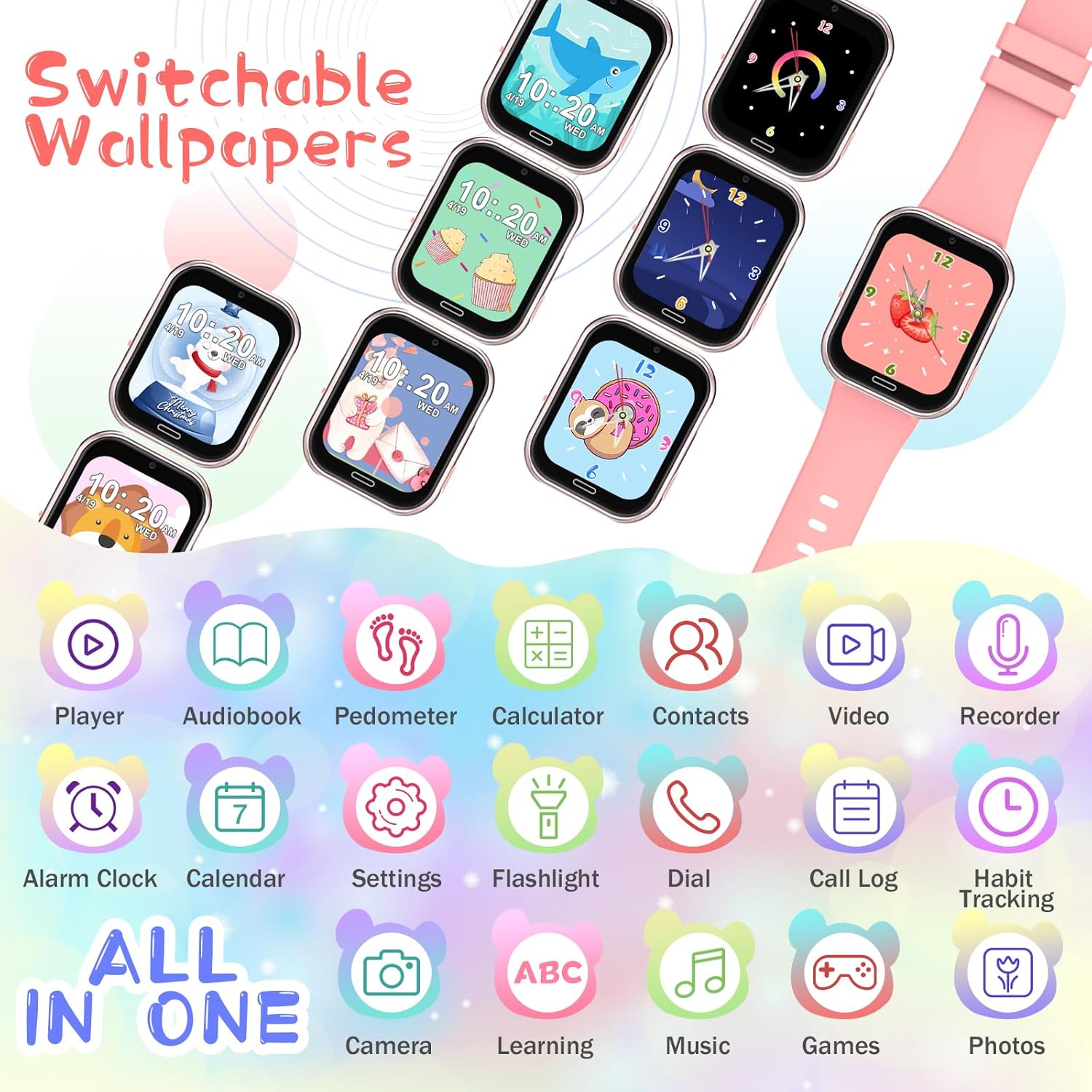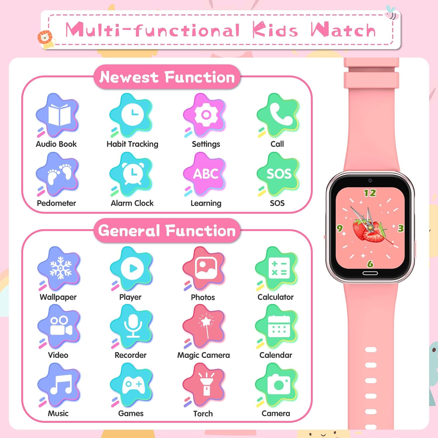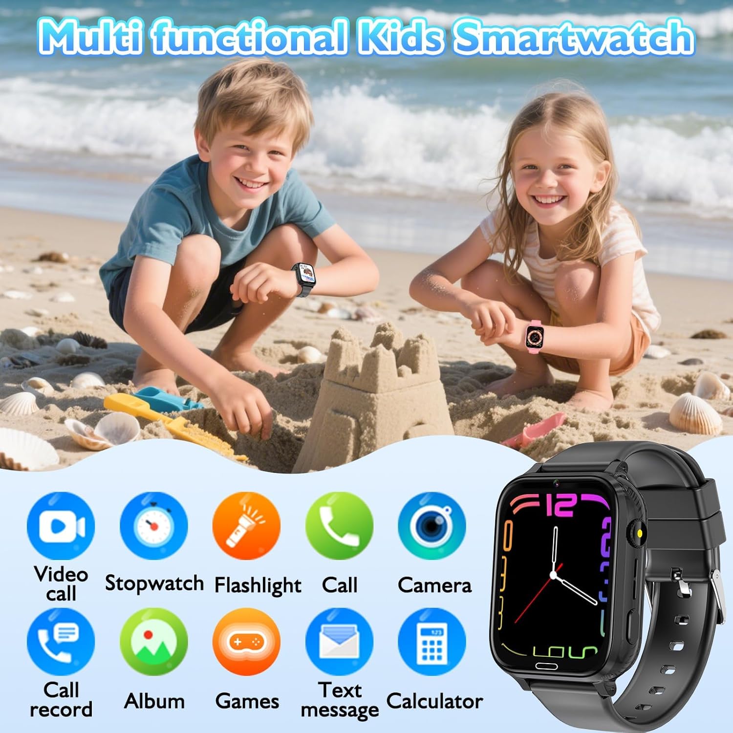 【Multifunctional and Practical Design】 The children’s smart watch with SIM has IP68 certification of deep water resistance, protecting you from splashes of water, rain and daily water activities. 800mAh high capacity battery ensures long-lasting battery life, easily satisfying daily use. It integrates multiple practical functions: alarm clock, flashlight, calculator, stopwatch, pedometer, games, camera, photo album and sleep monitoring. It is the perfect gift for birthdays, Christmas or the beginning of the school year, accompanying every precious moment of growth.
