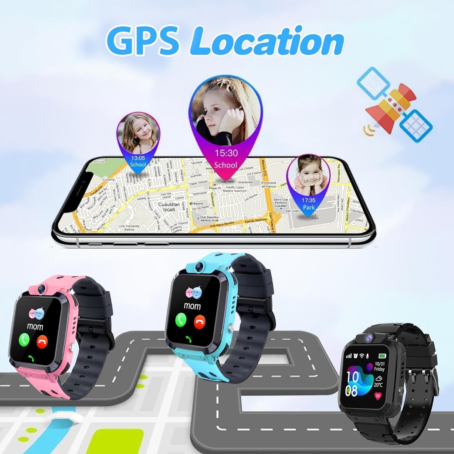 【Triple Positioning, Precise Protection】 The kids watch is equipped with a built-in triple intelligent positioning system with GPS, LBS and Wi-Fi, which accurately tracks the baby’s position in real time. You can check your child’s position at any time via the phone, making it easier and worry-free to keep your baby safe. The kids smart watch with GPS also supports setting up multiple safety zones (such as home and school) via the app. Immediate notifications alert parents whenever the child enters or leaves a designated area, giving them peace of mind.