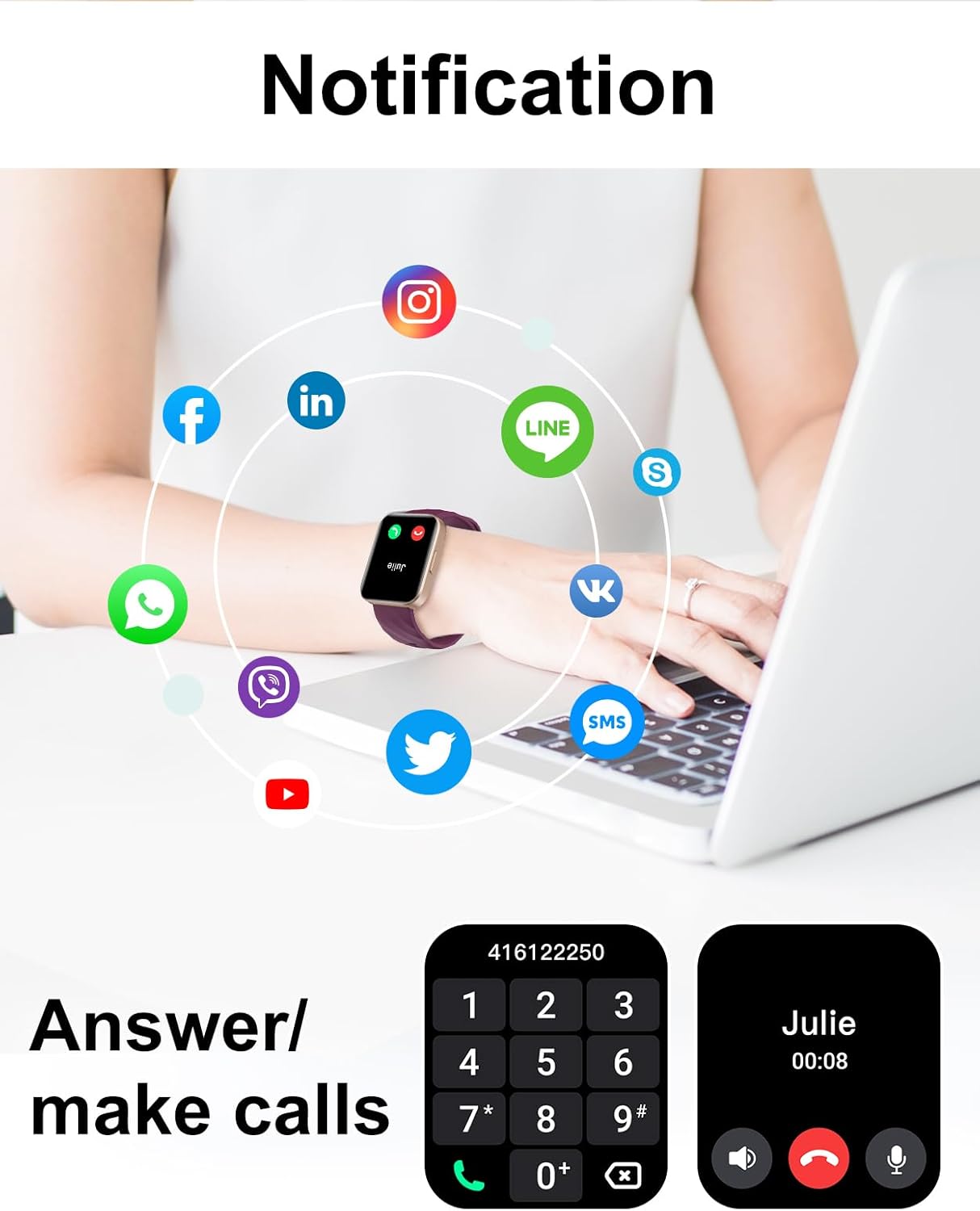 Smartwatch che non ha nulla da invidiare a marche più blasonate! Design che si adatta a tutte le situazioni eleganti, casul, o sportive comodo da indossare. Funzione fitness completa: pressione sanguigna, sonno, contapassi e oltre 120 sport! La batteria dura tanto , ovviamente è legata all’utilizzo dello stesso, app intuitiva. Perfetto per Android e iOS.Super consigliato!!!