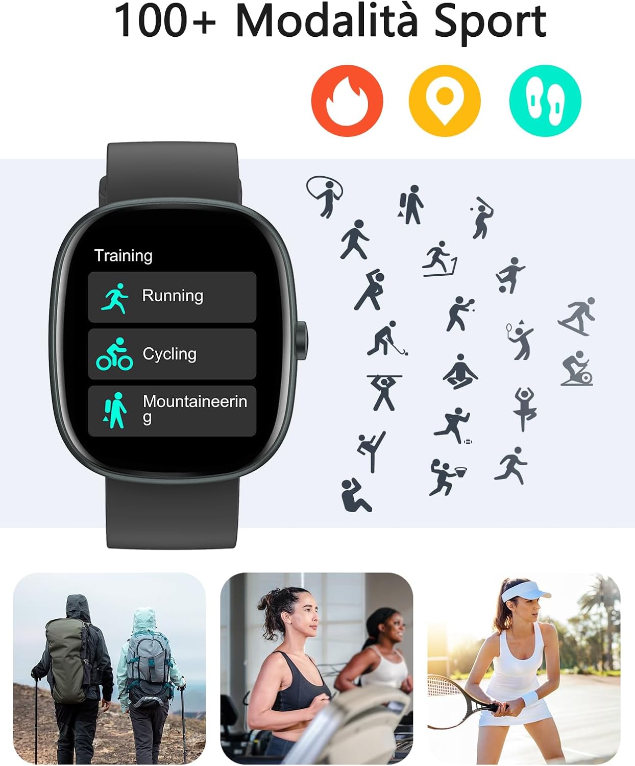 Extensive Fitness Tracking: Supports over 120 sports modes, each of which tracks key data such as distance, pace, calories and heart rate for running; speed, distance, duration and heart rate for cycling; step count, distance, calories and heart rate for walking; exercise duration, calories and heart rate for yoga.